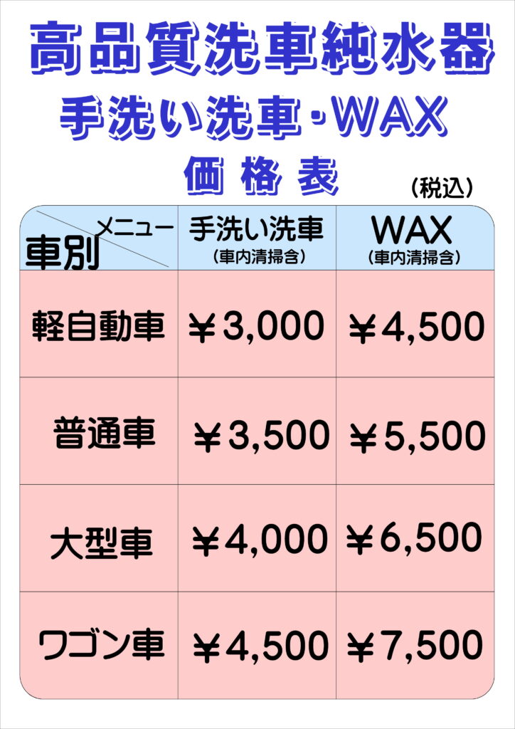 洗車・WAXメニュー